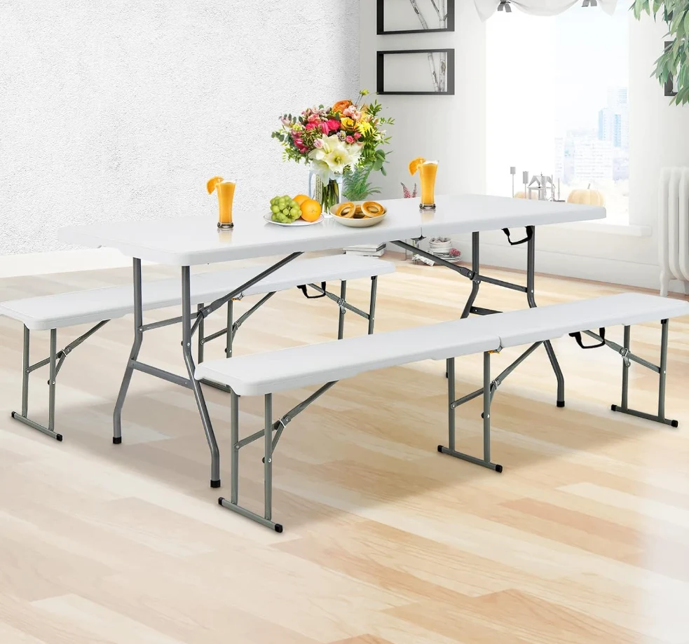 Ҷадвали баландсифати лагери баландсифат, сафед дар мизи сафедпӯсти Taply Tass Take Tast Schooling Pass Pass, ки фазои васеъ барои нигоҳ доштани хӯрок, шириниҳо, нӯшокиҳо, нӯшокиҳо ё газакҳо. Ин мизи пӯшида метавонад тақрибан 8 нафарро барои хӯрдани хӯроки оилавӣ ё зиёфати ҳизб ҷойгир кунад. Ва ҳама кунҷҳои боло мизбонӣ мудаввар карда мешаванд, то осеби тасодуфиро пешгирӣ кунанд.