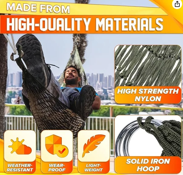 Ҳошин кардани густариши гамак, ин сатрҳои Nylon Hamock дорои қобилияти баланди бордор мебошанд. Ин нейлон Ропон Ропи гамуд барои дарунӣ ва берун аз он, ки ба таври баландтарин ва берунӣ тобовар аст