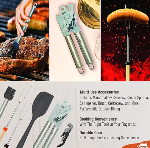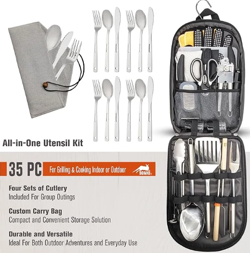 Болишти захира кардани қаҳрамонони берунӣ Ин 35 логлинги пухтупаз даруна кардани пазед. Истифода бурдани хӯрокҳо барои эҳтиёҷоти пухтупази берунии шумо. Он маҷмӯи ошхонаи истгоҳ ва лагерҳоро дар бар мегирад, ки маҷмӯи пухтупазро дар бар мегирад, ҳама аз ҳад зиёд дар халтаи фармоишӣ бо ақибҳои иловагӣ ва ду ҷайби бозгашт. Маҷмӯа барои қонеъ кардани ҳамаи лагерҳои пухтупази шумо тарҳрезӣ шудааст ва онро илова кардани он ба фишанги лагери худ