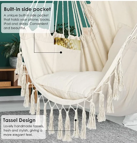 Дӯхтани дӯхтани парашаки парашаки парашют Танҳо шоха, чаҳорчӯбаи чӯб ё гамак, курсии бузургро барои берун аз ё дар дохили он пайдо кунед. Шумо метавонед ба осонӣ мулоҳиза кунед ё лаззат баред. Он барои истифода дар хоб хеле мувофиқ аст, зеро ороиш дар утоқ, балконҳо, курсҳо ва боғҳо. Агар ба шумо баргардонидан лозим ояд, тегро аз курсии шино намерасонед